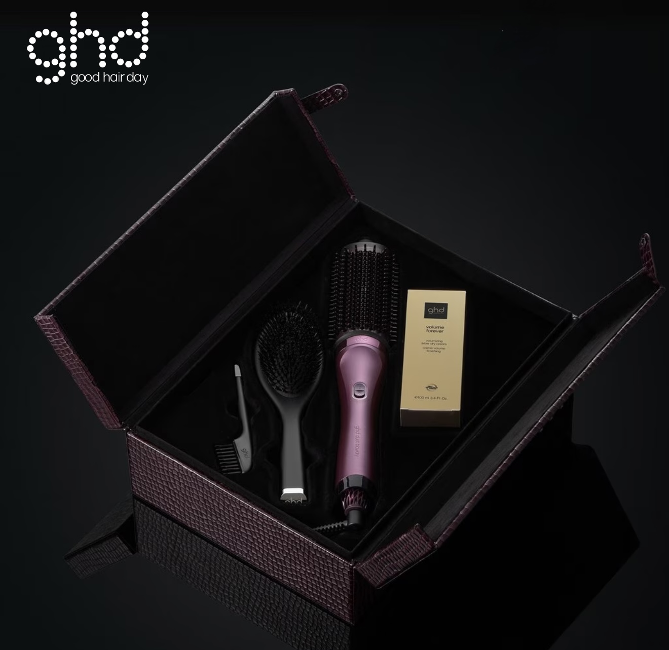 Υποδεχθείτε την εορταστική περίοδο με λάμψη με τη συλλογή ghd cherry chic. Με γοητευτικό κερασί χρώμα και εμπνευσμένο από πολυτελή ταξίδια, αυτό το περιορισμένης έκδοσης εορταστικό σετ δώρου ghd duet blow dry σάς προσκαλεί να απολαύσετε γοητευτικά και διαχρονικά όμορφα μαλλιά. Περιλαμβάνει τη βούρτσα θερμού αέρα ghd Duet Blowdry™ 2 σε 1, την κρέμα ghd Volume Forever™ – volumizing blow dry cream, τη βούρτσα ghd Oval Dressing Brush, βουρτσάκι καθαρισμού, θερμοανθεκτική επιφάνεια3 και πολυτελή θήκη ταξιδίου.²